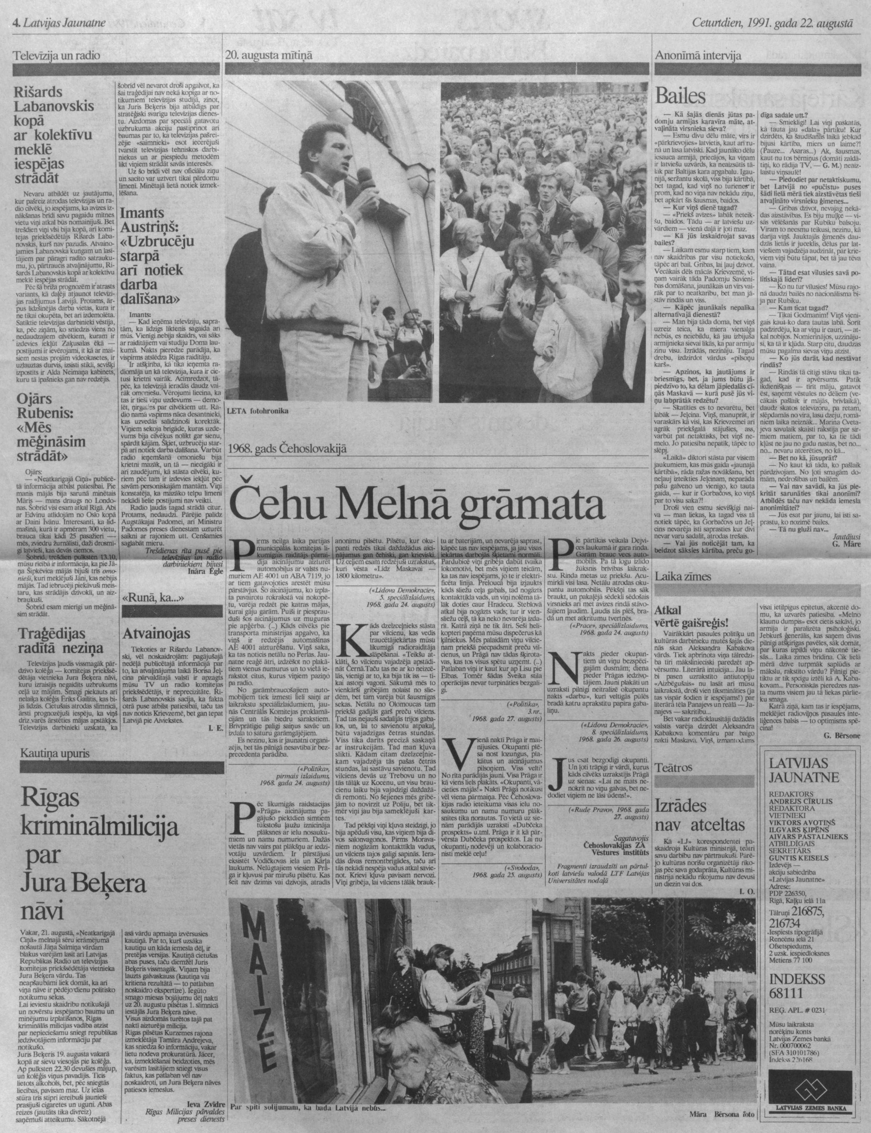 Radio ļaudis tagad strādā citur. Protams, nedaudzi. Pārējie palīdz Augstākajai Padomei, arī Ministru Padomes preses dienestam uzturēt saikni ar rajoniem utt. Cenšamies saglabāt mieru.