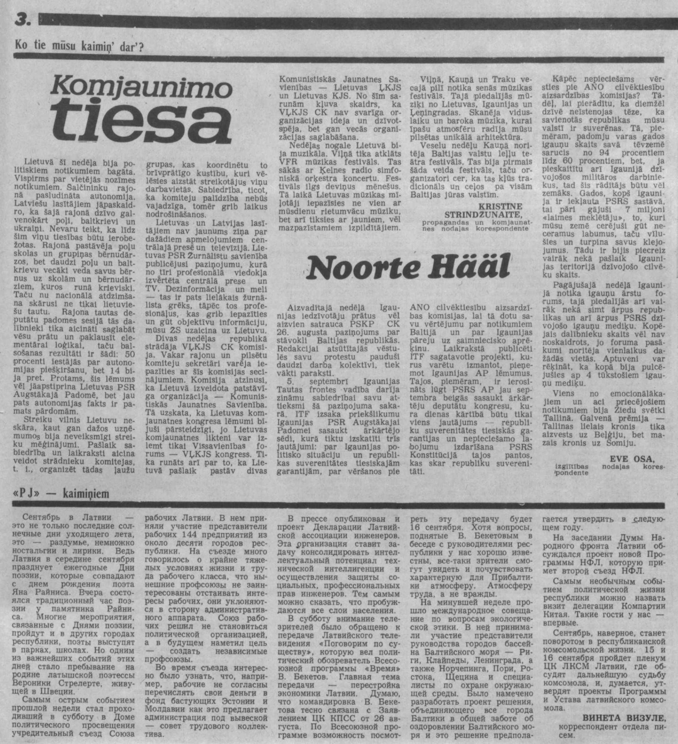 Lietuvas un Latvijas lasītājiem nav jaunums ziņa par dažādiem apmelojumiem centrālajā presē un televīzijā. Lietuvas PSR Žurnālistu savienība publicējusi paziņojumu, kurā no tīri profesionālā viedokļa izvērtēta centrālā prese un TV. Dezinformācija un meli — tas ir pats lielākais žurnālista grēks, tāpēc tos profesionāļus, kas grib iepazīties un gūt objektīvu informāciju, mūsu ŽS uzaicina uz Lietuvu.