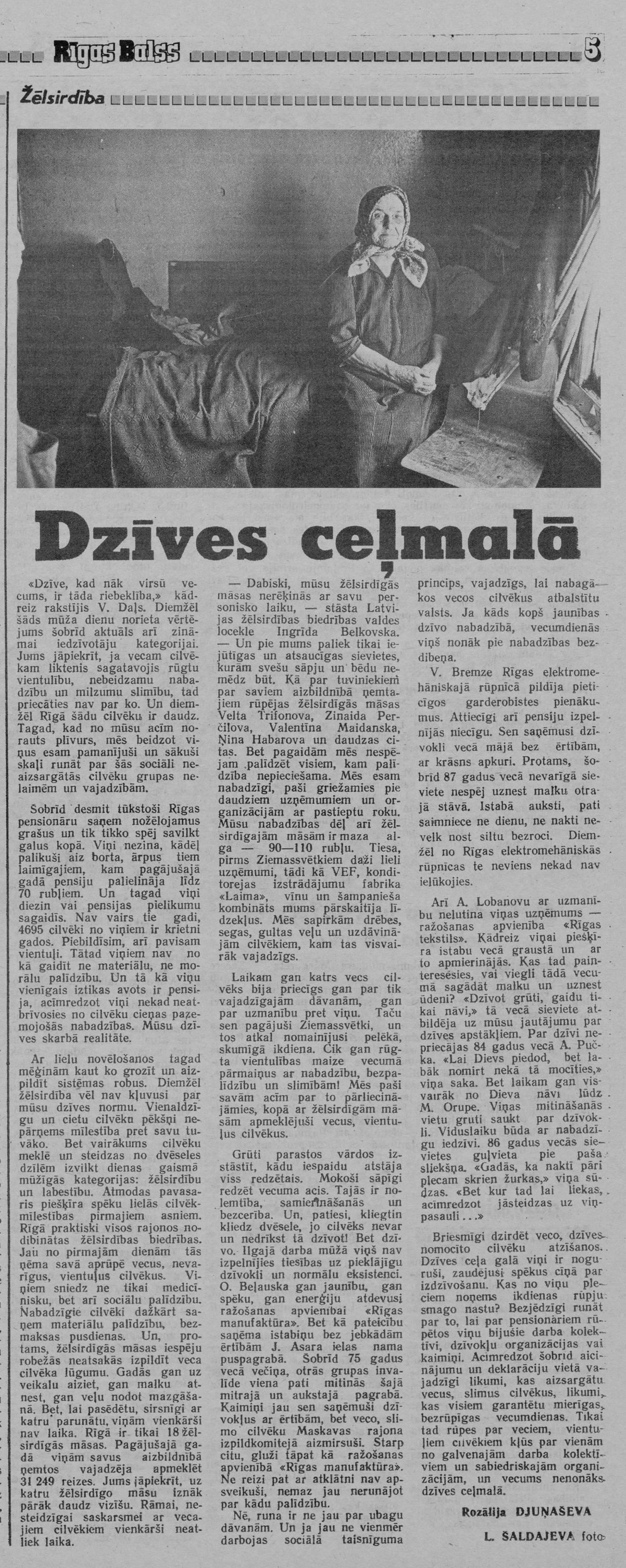 Šobrīd desmit tūkstoši Rīgas pensionāru saņem nožēlojamus grašus un tik tikko spēj savilkt galus kopā. Viņi nezina, kādēļ palikuši aiz borta, ārpus tiem laimīgajiem, kam pagājušajā gadā pensiju palielināja līdz 70 rubļiem. Un tagad viņi diezin vai pensijas pielikumu sagaidīs. Nav vairs tie gadi, 4695 cilvēki no viņiem ir krietni gados. Piebildīsim, arī pavisam vientuļi. Tātad viņiem nav no kā gaidīt ne materialu, ne morālu palīdzību. Un tā kā viņu vienīgais iztikas avots ir pensija, acīmredzot viņi nekad neatbrīvosies no cilvēku cieņas pazemojošās nabadzības. Musu dzīves skarbā realitāte.